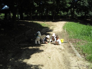 野外での自由遊びを主体にし、子どもたちが、のびのびと遊ぶ時間を過ごすことを大切にしています。
