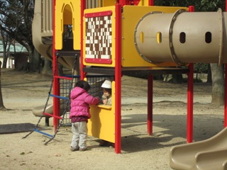 遊具のところで、早速お店屋さんごっこ。