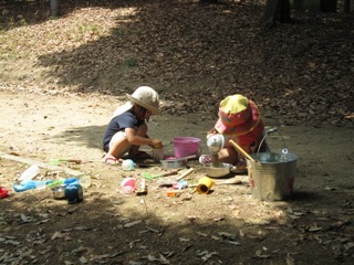 メダカとりをした後は、いつもの場所に戻って泥んこ遊び。