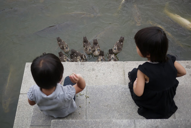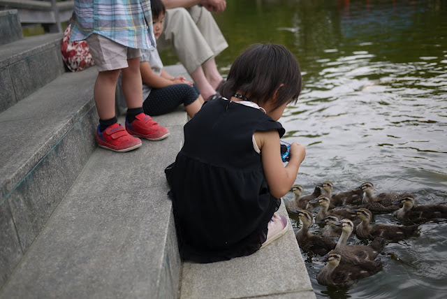 で、カモの赤ちゃんはと言うと、もう既に赤ちゃんと呼ぶには大きく、禁止だった餌やりも解禁されていて、ものすっごいスピードで餌を追いかける姿が面白く、子ども達、大爆笑でした。