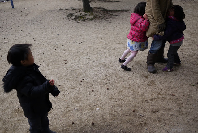 寒いのか?Cママとおしくらまんじゅう(二枚目)。 忘れたけど、何か変な言い方して笑ってたな~。 見守るYタ