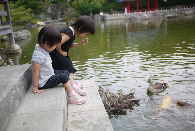 で、カモの赤ちゃんはと言うと、もう既に赤ちゃんと呼ぶには大きく、禁止だった餌やりも解禁されていて、ものすっごいスピードで餌を追いかける姿が面白く、子ども達、大爆笑でした。