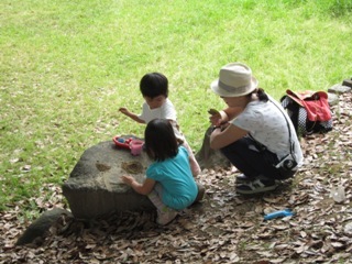 こんな風に泥んこ遊びの合間に触ろうとするので、ママたちは油断できません。