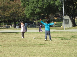 お弁当の後はキャッチボール。