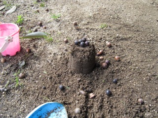 シャリンバイの実を取ったり、車に見立てた