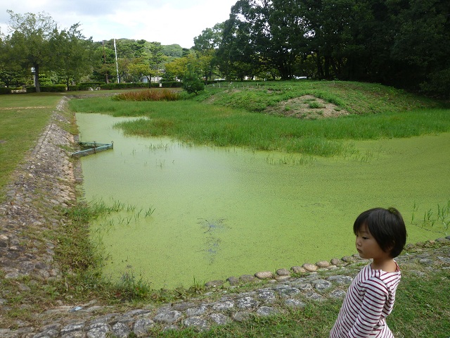池の向こうにサギを発見!