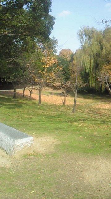 公園の木々の根元には落ち葉がぎっしり。