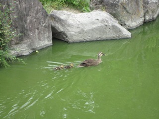 で、カモの赤ちゃんはと言うと、もう既に赤ちゃんと呼ぶには大きく、禁止だった餌やりも解禁されていて、ものすっごいスピードで餌を追いかける姿が面白く、子ども達、大爆笑でした。